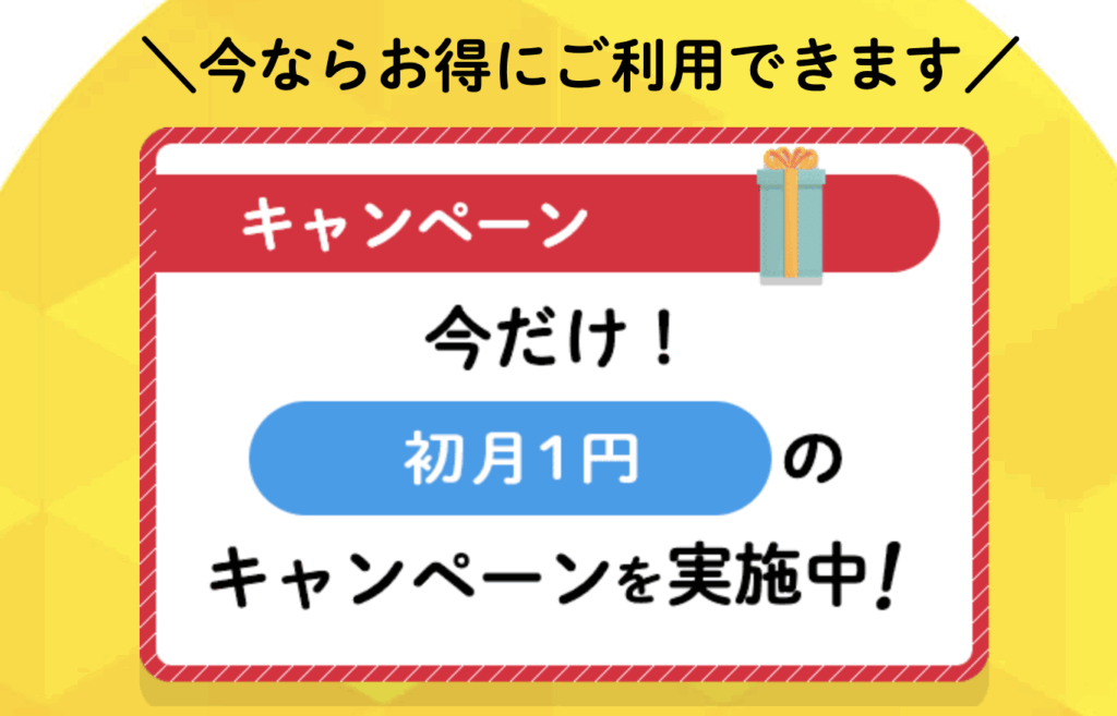 アンドトイボックスでは、初月1円のお得なキャンペーンを実施しています。