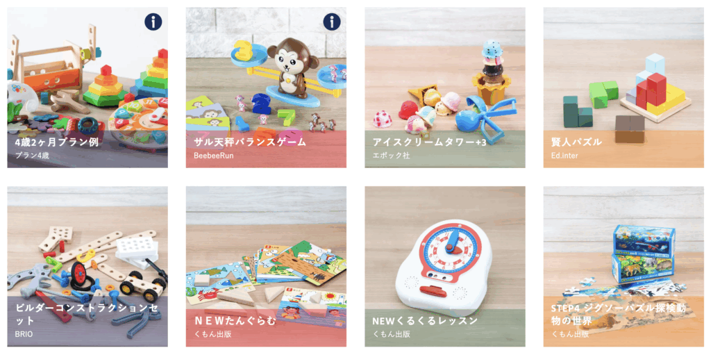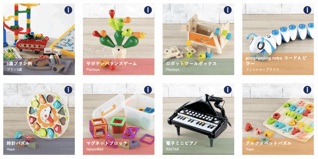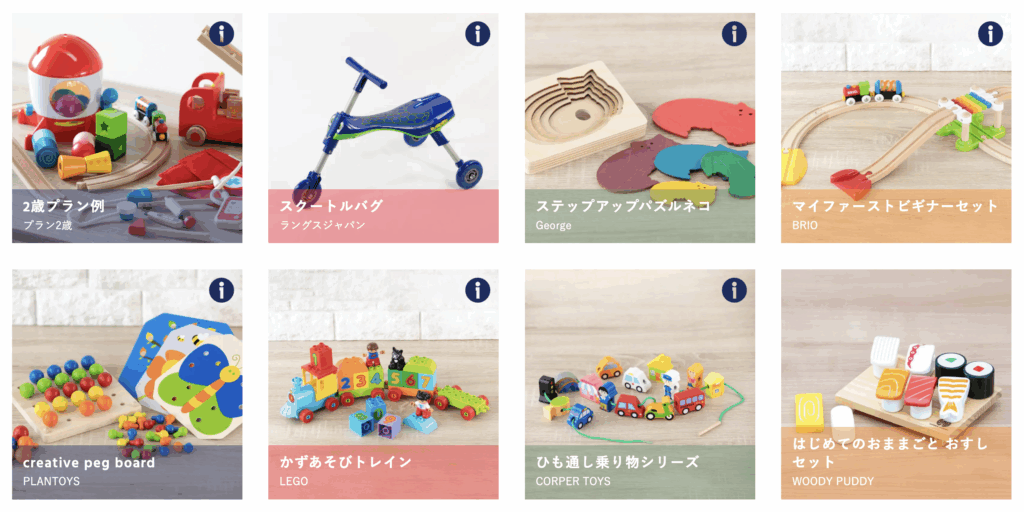 「たくさんのおもちゃで遊ばせたい」という方には物足りないかもしれませんが、「質の良いおもちゃを厳選して使いたい」という方には合っていると思います。