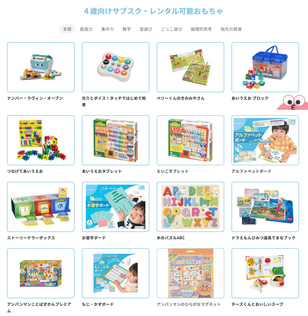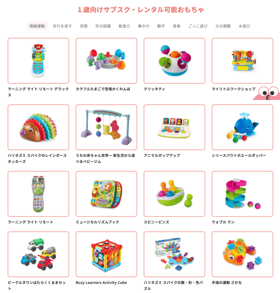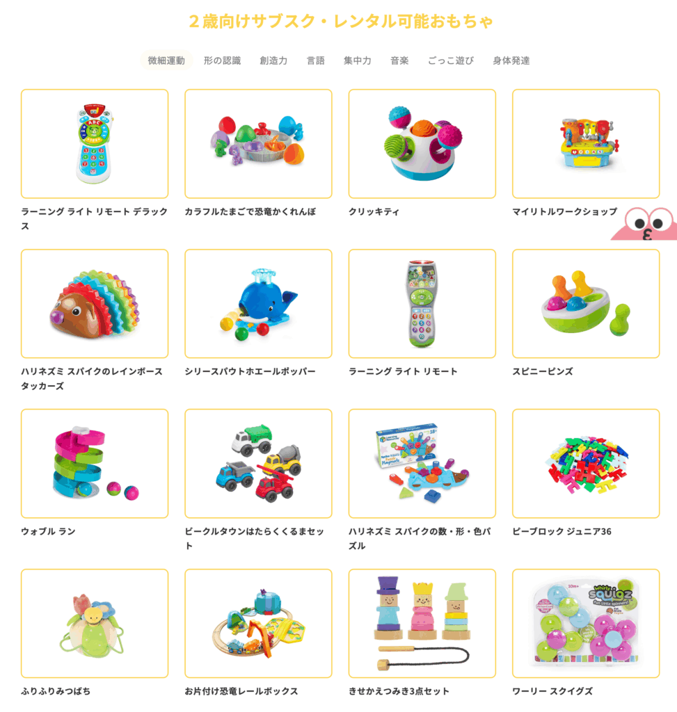 • カタログから好きなおもちゃを選べる唯一のサービス(700点以上公開)