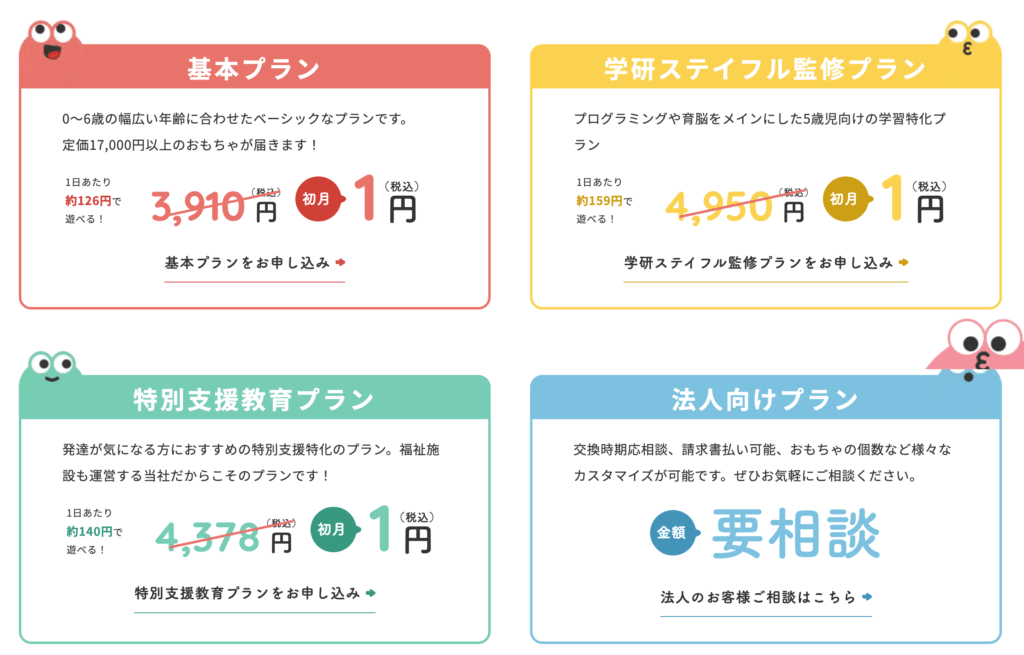 プラン名月額料金(税込)対象年齢おもちゃ点数特徴