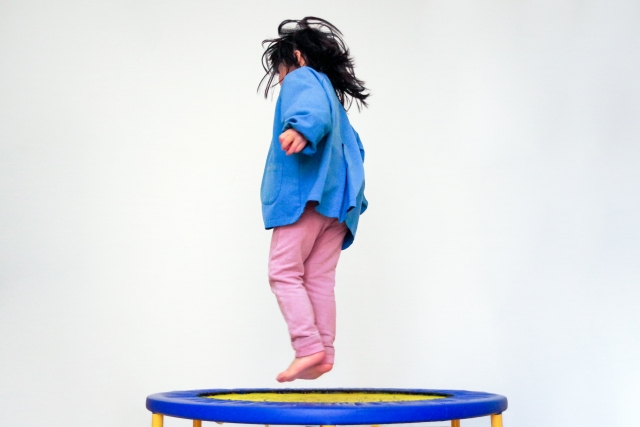 トランポリンは、ジャングルジムと同等の運動効果が期待できる代替品として人気です。特に、直径90cm程度の小型トランポリンなら、設置スペースもジャングルジムより少なくて済みます。ジャンプ運動は、バランス感覚や体幹の強化に効果的で、雨の日の運動不足解消にも役立ちます。使用しない時は立てかけて収納できるため、省スペース性にも優れています。