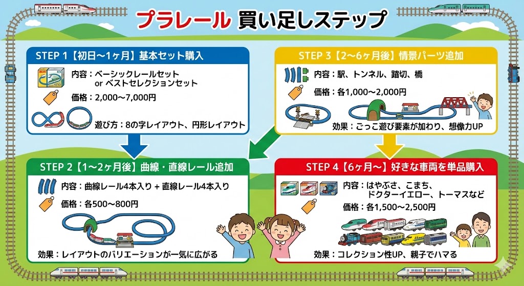 こんな人におすすめ: 長く遊ばせたい、将来的に買い足ししたい、子どもの好きな車両を選ばせたい